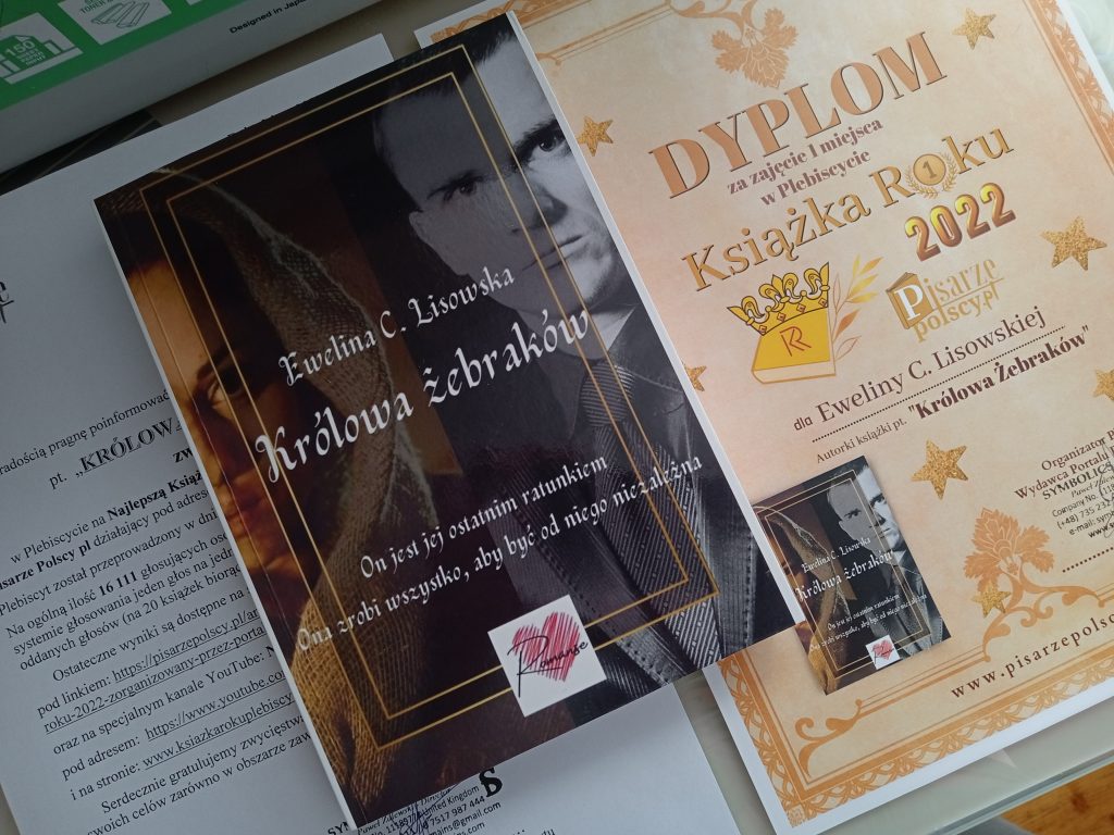 Kochani 😊 jak widać, zajęłyśmy z Królową Żebraków pierwsze miejsce w plebiscycie na książkę 2022 roku. Portal Pisarze Polscy nominował nas w grudniu, a Wy, dzięki swoim głosom dokonaliście prawdziwego cudu! Jestem niezmiernie wdzięczna za każdy głos. Każdy z Was przyczynił się do tego, że odniosłyśmy tak wspaniałe zwycięstwo. Przyznam, że początkowo – jak to w mojej mało optymistycznej naturze bywa – nie liczyłam na nic. Ale z czasem pokazaliście mi, że jednak jestem dla Was ważna i walczyłam aż do końca. Tak wiele spotkało mnie życzliwości z Waszej strony… Jestem wzruszona.