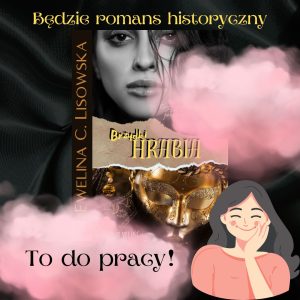 Przewidujemy premierę tej powieści na styczeń! Ale czas pokaże, co wymyśli nasza autorka. Po drodze bowiem zamarzyło się jej napisanie pierwszego tomu romansu science-fiction oraz romansu współczesnego. Tymczasem pozostawiamy Was z prawie całą okładką BRZYDKIEGO HRABIEGO 🙂 Jesteście ciekawi, co skrywają te chmurki i o czym jest nowy romans historyczny autorstwa Eweliny C. Lisowskiej? Trzeba jeszcze będzie poczekać na ogłoszenie daty premiery, żeby chmurki zniknęły… Oczekujcie cierpliwie i trzymajcie kciuki, żeby wszystko poszło zgodnie z planem. A tutaj macie link do nagrania fragmentów: