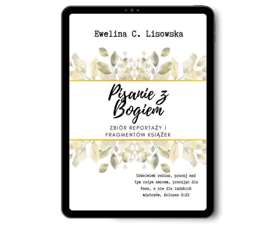 „PISANIE Z BOGIEM Zbiór reportaży i fragmentów książek” to historia pisarskich początków autorki romansów Eweliny C. Lisowskiej. Pisarka prowadzi Czytelnika przez kolejne krótkie rozdziały, które niosą z sobą cenne rady dla początkujących i zaawansowanych twórców słowa. Książka zawiera wiele odniesień do bliskiej relacji autorki z Bogiem, którego nazywa swoim Przyjacielem. Podzielona jest na cztery części: Reportaże, O Bogu w moich książkach, Fragmenty Książek i Złote Myśli. Jest to najważniejsza z dotąd wydanych przez Ewelinę C. Lisowską książek i jej debiut reportażowy.
